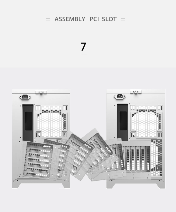 Hoewel deze behuizing slank is, biedt het voldoende ruimte voor krachtige componenten, zoals grafische kaarten, SSD’s, en waterkoeling.