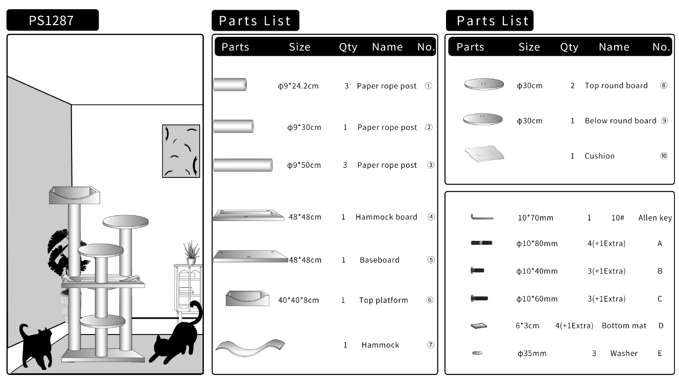Einfache Montage : Unser Katzenklettergerüst ist einfach und schnell zu montieren, eine klare Anleitung liegt bei und innerhalb einer halben Stunde kann Ihre Katze ihren neuen Lieblingsplatz genießen.